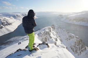 Un dernier run alors que le soleil s’est déjà caché derrière les montagnes. Une superbe première journée couronnée en soirée par des aurores boréales.