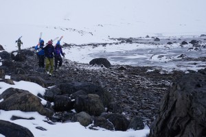 Pour ce genre d’aventure, il faut un peu de chance, surtout avec la météo. La semaine précédant notre voyage, il a plu sans discontinuer sur Hornstrandir, certains jours même jusqu’au sommet des montagnes. Heureusement, la veille de notre arrivée, la neige refait son apparition. De quoi nous offrir des conditions de ski très honorables.