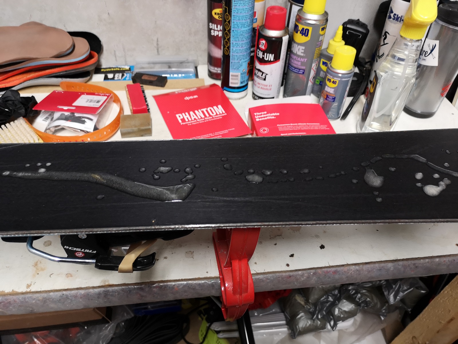 A la fin de cette période d’exposition, on constate qu’il y a moins de produit sur la semelle qui s’est donc imprégné et il suffit ensuite de nettoyer la semelle et l’opération de fartage est terminée.