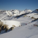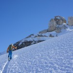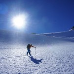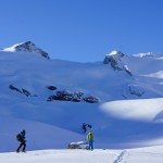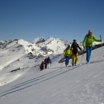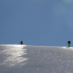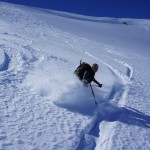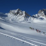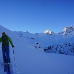 Nous avons vécu une journée extraordinaire dans le Val de Rhèmes. La montée fut certes longue, notamment avec ce long faux plat pour rejoindre le glacier du Fond oriental, très bien bouché. Celui-ci nous fit enfin prendre du dénivelé de façon très efficace. Tout au long de la montée, la neige devenait de plus en plus légère, restée bien froide dans cette belle journée ensoleillée. Une fois le sommet atteint, nous nous sommes rendus sous la Punta Bousson, après une courte traversée NE, pour atteindre le haut du Glacier de Lavassey. Nous avons skié une pente un peu plus soutenue dans une neige de cinéma. La descente fut majestueuse jusqu’au bas du glacier du Lavassey pour rejoindre le replat. Une journée extra en montagne comme on les aime. |