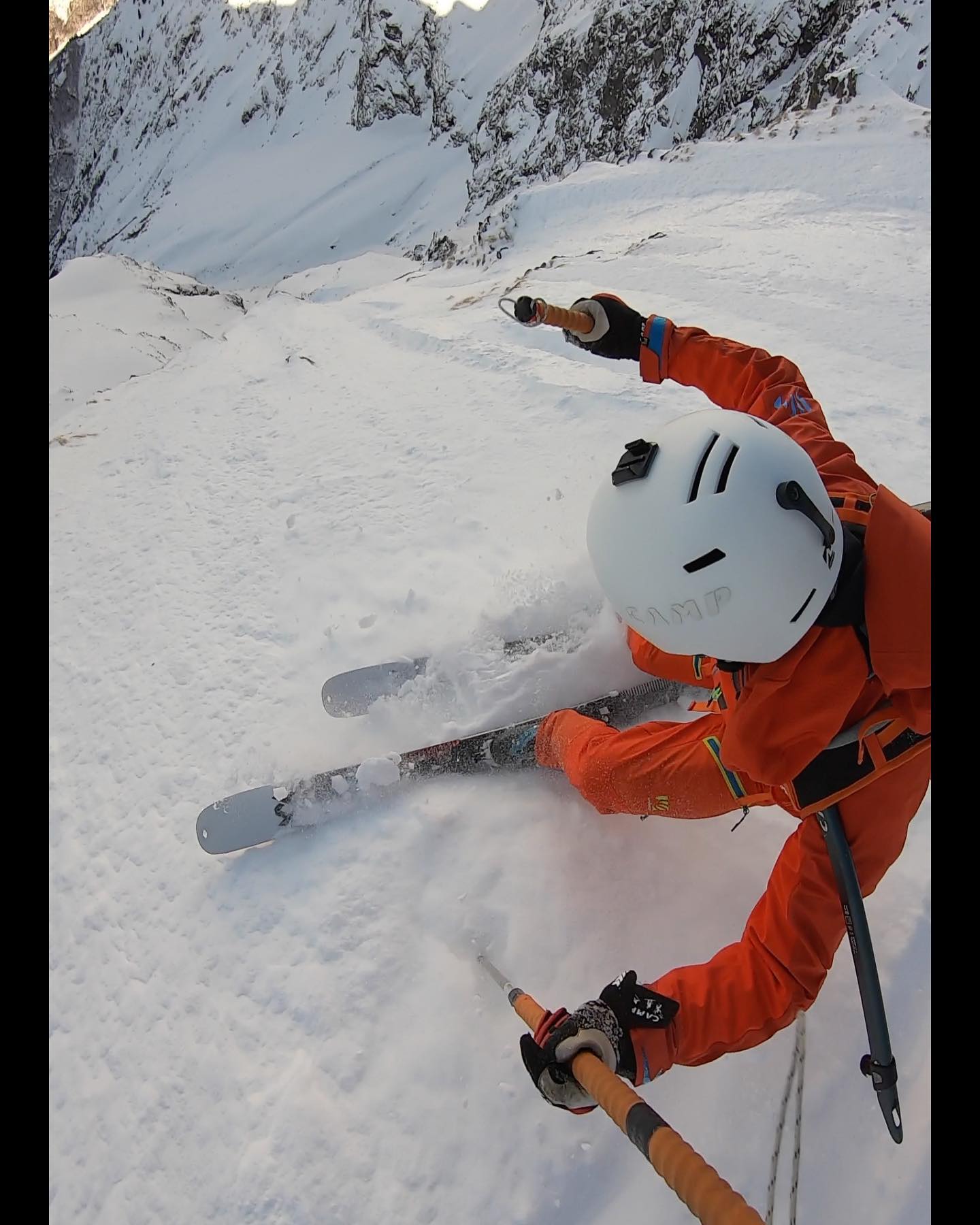 Même si les dix descentes sont toutes plus impressionnantes que les autres, l’une d’entre elles m’a particulièrement marquée. Le 1er avril, Paul accompagné de Vivian Bruchez descendait la face est du Combin de la Tsessette, 4 141 m dans le val de Bagnes en Suisse. Une descente impressionnante de 1200 mètres de haut, mixant un niveau d’engagement et une difficulté proche des plus grandes réalisations de pente raides dans les Alpes.