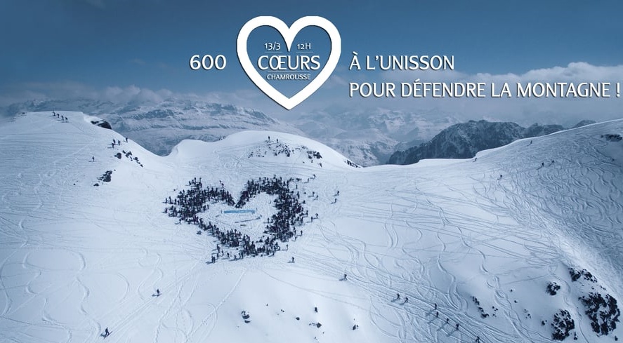 Répondant à l’appel de 25 organisations (clubs et professionnels de la montagne, associations de protection de l’environnement), les nombreux participants ont formé dans une ambiance festive un cœur géant à plus de 2400m d’altitude.