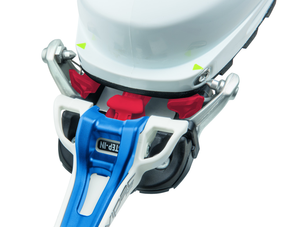 Le premier point concerne le chaussage, qui posait des problèmes à bons nombres de pratiquants. Dorénavant des guides placent la chaussure en position de chaussage, ainsi les pins s’enclenchent avec précision dans les inserts via un mécanisme de verrouillage.