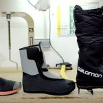 Vient ensuite par dessus une chaussure conçue avec une isolation supplémentaire pour garder les pieds au chaud. Ces deux pièces ensemble seront ensuite placées dans une plus grand botte isolée avec crampons intégrés que Kilian Jornet utilisera pour monter au sommet de l’Everest.