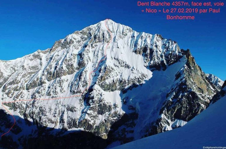 La Dent Blanche (4357m) est un sommet mythique en Suisse. La descendre à ski est une prouesse qui n’a été réalisée que par très peu de skieurs, toujours par sa face Est Sud Est. Paul Bonhomme vient d’en réaliser la descente à ski en ouvrant un nouvel itinéraire dans sa face Est avec pas moins de 1100m de dénivelé.