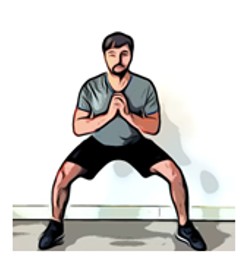 Les squats. Pensez à maintenir votre dos bien droit. → Faites 1 série de 20 mouvements. |