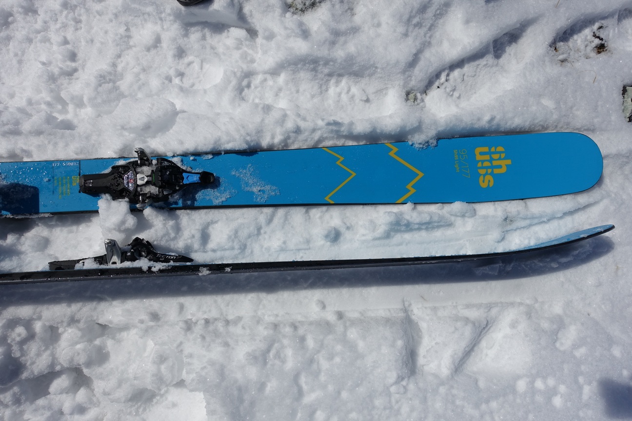 Le ski fait 1.45kg et était monté avec une paire de Diamir Tecton lors de ce test, ce qui ne faisait pas de ce montage quelque chose de « pur randonnée » mais plutôt typé « freerando ». Cependant, la Diamir Tecton offre un avantage qui est de skier avec une conduite proche d’une fixation plus alpine, notamment grâce à une talonnière alpine.