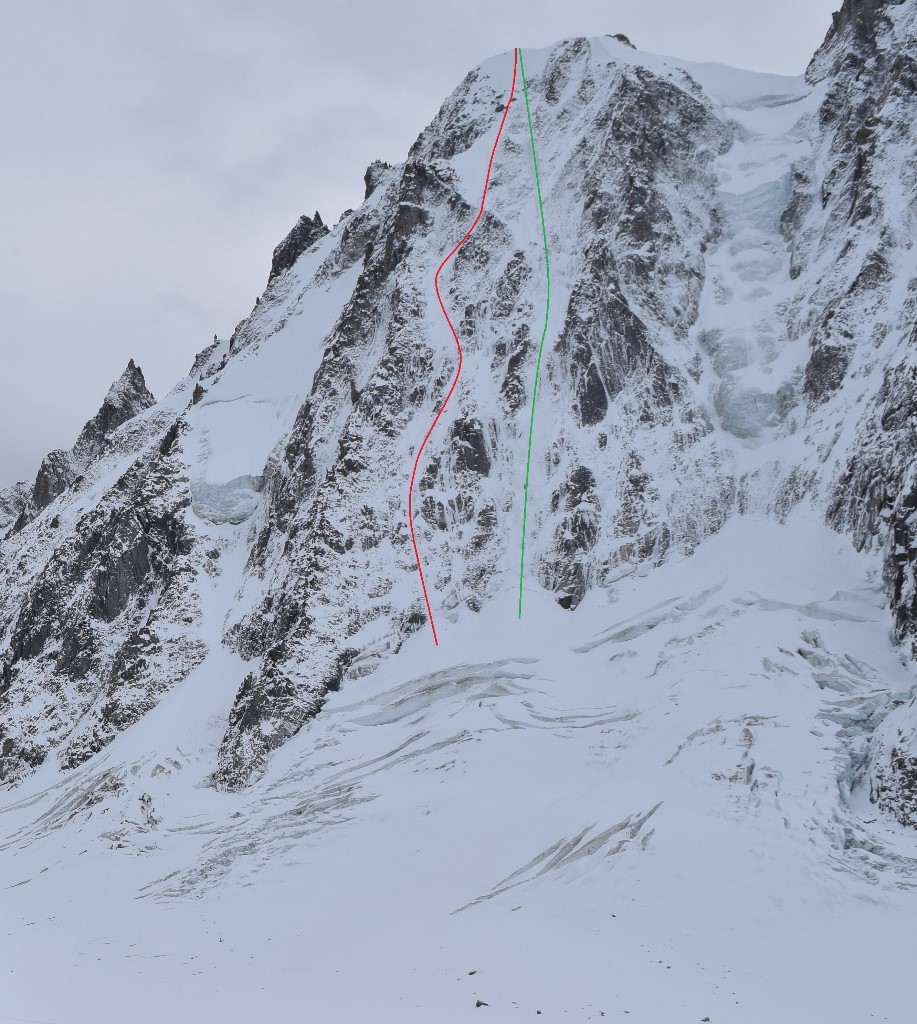 La première concerne la descente de la mythique voie des Autrichiens le 9 Avril 2016, réalisée par Stéphane Roguet, Yannick Boissenot, Titi Gentet et Nico Brunet.
