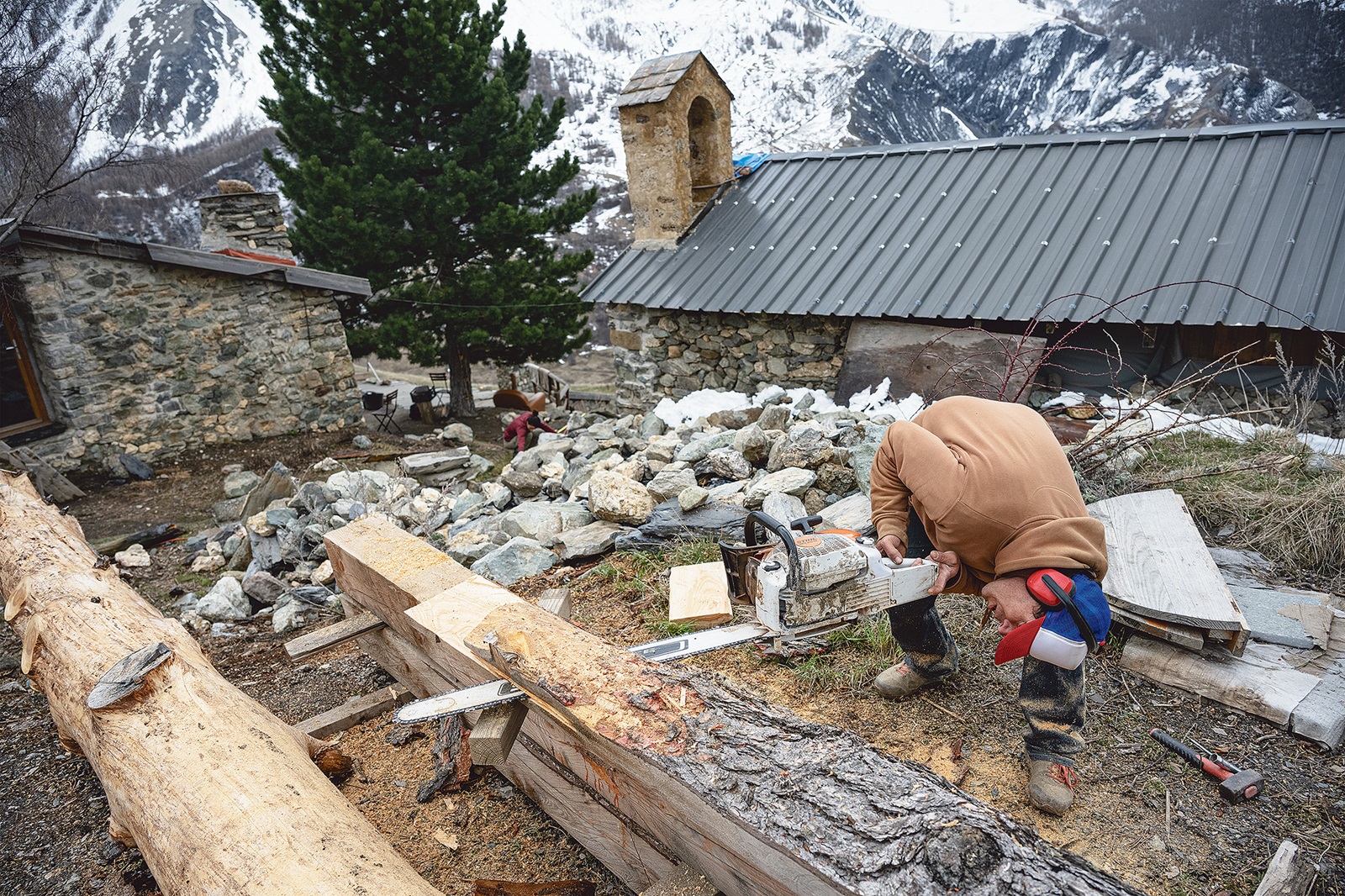 On y retrouve notamment le portrait, certainement le plus attachant, qui n’est autre que celui du couple formé par Aurélien Routens, snowboardeur de la Grave, avec sa compagne Agathe. Tous deux ont choisi de s’établir dans un minuscule hameau, au-dessus de la Grave, accessible à pied uniquement.