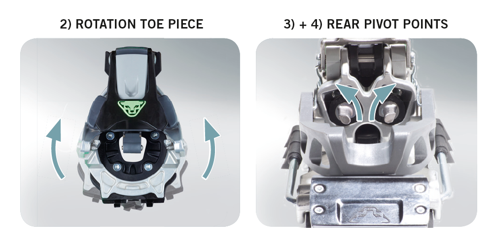 La grande nouveauté sur cette fixation est la rotation de la butée avant, amenant le déclenchement et la sécurité qui n’existait pas jusqu’alors. De même les inserts arrières évolueront et cela devrait entraîner de nouveaux types d’inserts arrières à adapter sur les chaussures ou alors changer de matériel…