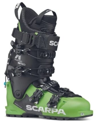 Nous allons parler de la chaussure de Nikolai Schirmer, ceci annonce directement la couleur. C’est une machine freeride dépouillée et musclée qui délivre une puissance surprenante dans un package léger. Les retours terrains disent qu’il est agréable d’exploiter l’énergie de cette bête dans toutes les conditions – y compris en station, où la Scarpa 4-Quattro Pro peut piloter un ski de carving comme une chaussure alpine classique.