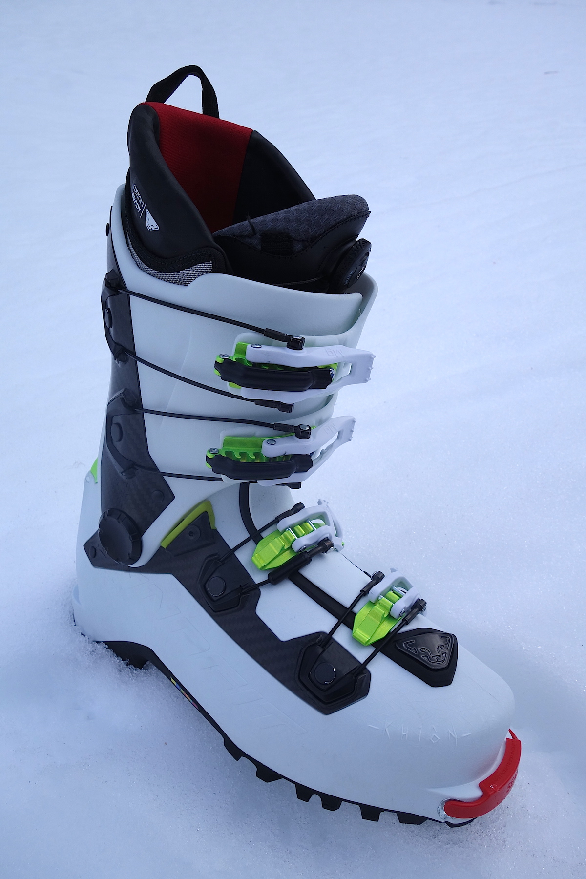 – L’ajout d’une course de 10 mm sur la talonière qui signifie que nous n’aurons plus besoin de laisser les 5mm habituels entre la chaussure et les pin. Dynafit s’aligne au comportement de la Diamir Vipec. La chaussure sera donc au contact de la talonnière au niveau des pins arrières. Une amélioration donc concernant « l’élasticité longitudinale » qui est plus importante qu’auparavant.