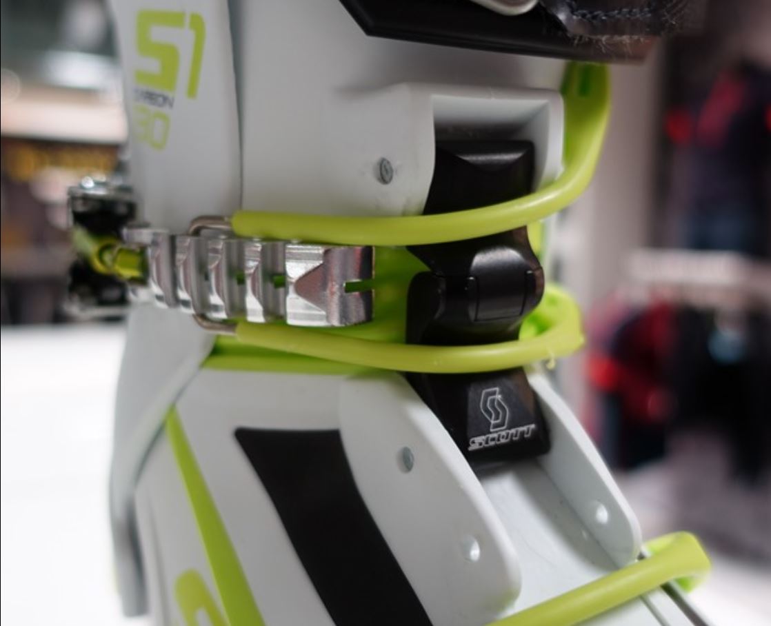 A noter que Scott a beaucoup travaillé sur les matériaux utilisés au niveau de la structure de la coque avec une structure Grilamid-Carbone et des renforts carbone qui ont été mis pour rigidifier la chaussure tout en offrant plus de précision dans la conduite du ski en descente. La S1 Carbon est dotée d’un flex très puissant de 130 digne d’une chaussure freeride tout en gardant un poids réduit de 1375g par pied.