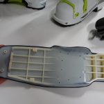 Un joli travaille a été également effectué au niveau de la crochetterie. Ces chaussures ont deux crochets supportés par un collier avec un crochet de serrage sur le haut de la chaussure qui permet de jouer sur la progressivité en rigidité que l’on souhaite mettre sur le tibia.