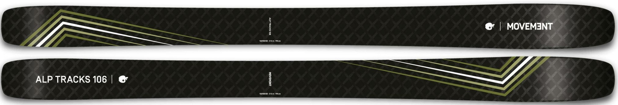 Movement reconduit la version du modèle Alp Tracks 106 pour cette saison. L’Alp Tracks 106 associe une légèreté et une conduite sur neige très intéressante. Son long rocker avant et son léger rocker arrière lui confèrent un très bon comportement en neiges profondes, tandis que sa construction en carbone, sécurise les passages délicats.