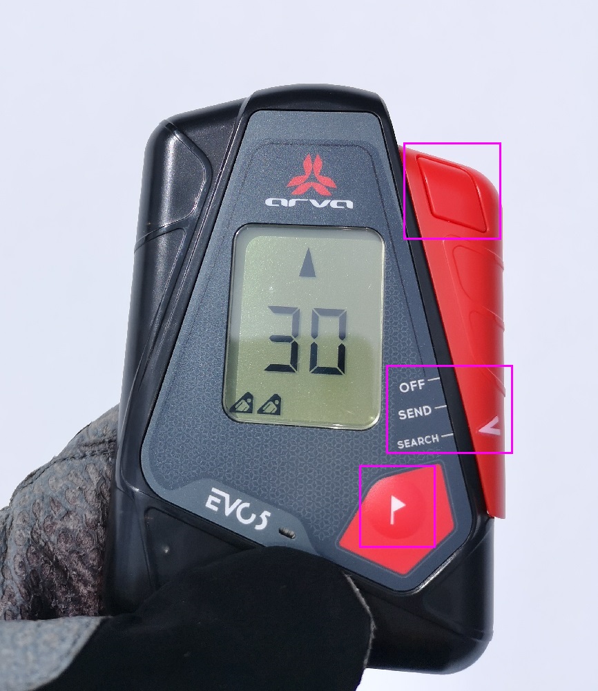 Cet appareil dispose également d’une fonction de marquage permettant lors d’une recherche multi-victimes de les marquer. L’ARVA Evo 5 propose aussi une gestion des interférences liées aux éventuels smartphones ou autres appareils électroniques qui pourraient perturbés une recherche. D’autres fonctionnalités importantes sont encore présentes, comme le « group check« , le retour automatique en émission en cas de sur-avalanche et enfin une indication de demi-tour.