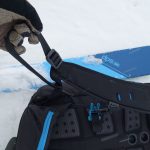 La légèreté du sac est en véritable atout notamment pour les personnes de moins de 70 kg. Ce sont des sacs très bien étudié pour le ski de randonnée mais également pour le freeride. Le gain de poids a été obtenu en cherchant à minimiser le maximum de détails, comme les sangles d’attaches de ski et portes piolets constitués de petites sangles avec des crochets pour en régler la longueur. Ces petits crochets ne me rassuraient guère pour le portage des skis, mais je n’ai eu aucun problème, de même avec le clip de petite taille toujours pour le porte ski sur la partie haute du sac, il n’a jamais bougé. La manipulation de ces petits éléments avec des gants n’est cependant pas du tout aisée, point négatif de ce point de vue.