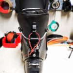 Donc lors du passage en mode descente, il suffit de remonter le bras levier à l’arrière de la chaussure et la corde se met en tension. Une fois la bonne longueur de corde trouvé cela vient bloquer efficacement le haut de la chaussure.