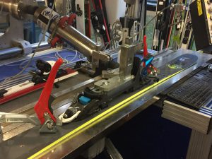 Nous avons pu également visiter les ateliers et voir les bancs de tests sur lesquels cette fixation a été testée. Les combinaisons de tests en fonction des typologies des chaussures de randonnées sont très importantes en raison de cette double normalisation fixation alpine et rando. Rappelons que le tout est homologué par le TÜV pour la sécurité.