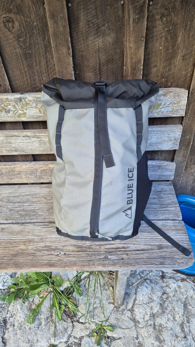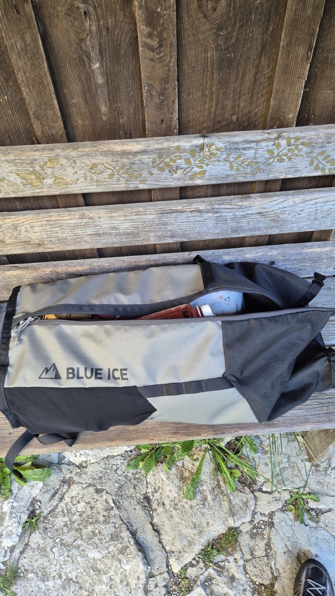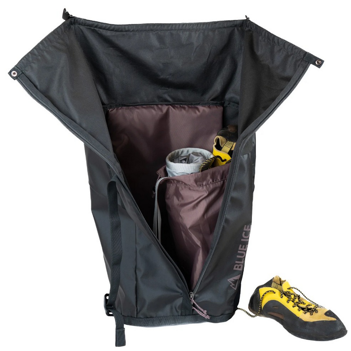 L’agencement interne révèle toute la réflexion menée par Blue Ice. Le compartiment principal est spacieux et permet de ranger facilement votre corde, votre harnais et vos autres équipements essentiels.
