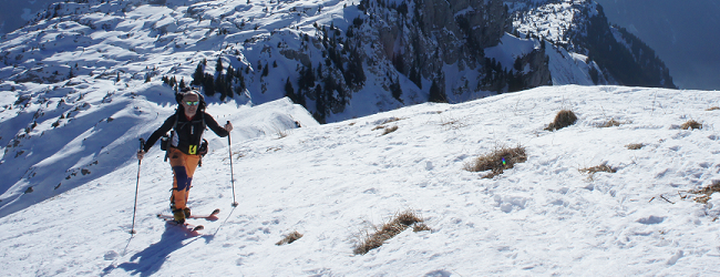 Massif : Bornes – Aravis Description Descente : descendre directement dans la face SE (30° max) afin de retrouver l’itinéraire de montée. Attention aux nombreux rochers qu’il faut bien reconnaître lors de la montée. Pour les éviter, il est possible de partir en traversée pour rejoindre l’itinéraire de montée plus haut un peu en dessous du col (pentes < 30°). Descendre alors par l’itinéraire de montée. Variante de descente plus soutenue : croiser l’itinéraire de montée et passer rive droite du Talweg. Couper au plus court entre sapins éparses et lapiaz pour retrouver un petit couloir étroit (30° max) entre deux barres rocheuses menant au point 1640m, passer à côté d’un chalet puis rejoindre le chemin initial de montée.Attention, le couloir peut être difficile à trouver si ce n’est pas tracé. Accès Journée d’initiation au ski de randonnée pour la section montagne de la boîte, 19 personnes et 4 guides sur le chemin de la petite Aiguille Verte. Beau temps et neige décaillée l’après midi, très bonne ambiance dans le groupe, découverte des conversions, mise en place des couteaux et ski sur neige dure mais parfois un poil décaillée… très bonne journée s’étant terminée par des exercices et explications DVA. Il y a globalement peu de neige dans le massif des Bornes, très surprenant pour l’époque… vivement la prochaine chute de neige. |