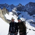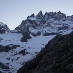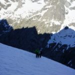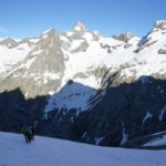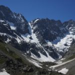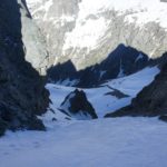 Enfin une journée de beau temps après deux jours de neige au cours de notre traversée des Écrins. Nous décidons de passer par le col du clôt des cavales pour rejoindre le refuge de l’Alpe Villar d’Arène. Cette course fut encore une fois essentiellement faite en neige tant l’enneigement de cet hiver fut excellent. Après un cheminement dans un sentier en lacet, nous avons chaussé les crampons pour rejoindre une combe sous un couloir permettant de rejoindre le col. Superbe ambiance dans l’ascension du col tout en neige dure parfaite pour cramponner avec une belle ambiance dans ce couloir. Du col la vue est magnifique sur la Meije sud, le col du Pavé, et la vallée menant à l’Alpe Villar d’Arene. Une longue descente pour rejoindre le refuge et son excellent accueil, une superbe traversée pour clôturer ces 3 jours dans les Écrins. |