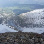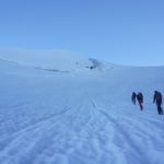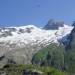 Une nouvelle découverte et un bien bel endroit que cette vallée des glaciers au dessus de Bourg-Saint-Maurice. Le Dôme des glaciers est une course facile par sa voie normale, et les conditions en neige excellente de cette année nous ont vraiment offert une très belle montée sans problème. Nous sommes d’ailleurs allé jusqu’à l’épaule de l’Aiguille des Glaciers pour avoir la superbe vue depuis ce sommet à presque 3700m d’altitude. La redescente en neige fut efficace puis nous avons descendu la moraine et contourner les barres rocheuses en rejoignant une petite vire qui amène au pied d’une cascade, un superbe sentier de descente pour rejoindre les Lanchettes. Le refuge Robert Blanc offre un excellent accueil et de parfaites conditions pour un refuge d’altitude, à conseiller. La prochaine fois ce sera avec les skis, car cette vallée est fantastique et cette course mérite d’être skiée. |