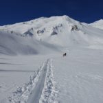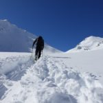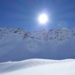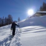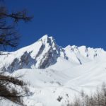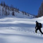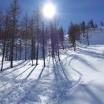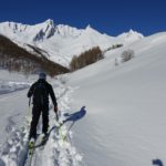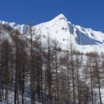 | E1 | Troisième jour en Valais et après deux jours de temps neigeux nous décidons de traverser le tunnel du Grand Saint Bernard pour aller randonner du côté de Crévacol. 60cm de neige étaient tombés deux jours auparavant, mais le vent avait fait son effet et l’ensemble des combes étaient plaquées au dessus de 2000m. Seul le ski entre les mélèzes sur les fonds de vallées était bon.