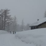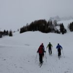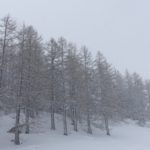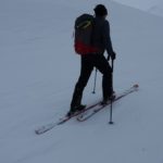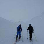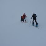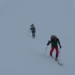 La descente se fera « au radar », la visibilité n’étant pas du tout au rendez-vous. Nous arriverons à faire quelques bons virages dans les 20cms de poudre fraîchement tombés. Une excellente journée dehors tout de même avec une neige fine et froide qui tombait régulièrement toute la matinée, nous offrant une atmosphère très agréable, une vraie ambiance d’hiver. |