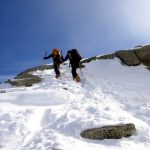 | 1400m | Massif : Alpes Grées S Secteur : Maurienne Description Du refuge partir direction Sud Est, d’abord à l’horizontale au-dessus du ruisseau d’Arnès, puis après avoir franchi le ruisseau remonter le vallon (assez raide et encaissé au début, puis ensuite plus large et moins pentu) qui débouche au col d’Arbéron (3022m). Rejoindre l’arête (vers 3200m) qui borde la rive gauche du glacier d’Arberon puis la suivre (arête étroite, crampons utiles) jusqu’au sommet. Accès Remarques Refuge(s) associé(s) : Refuge d’Avérole Nous sommes partis du refuge d’Avérole à 6h du matin pour l’Ouille d’Arbéron. Un groupe de 55 italiens partait pour la Pointe Marie, nous avons donc été seuls toute la journée, ce qui ne fut pas pour nous déplaire ! Nous avons mis les couteaux toute la montée, très bon regel la nuit précédente avec un froid qui se maintenait dans les pentes de l’Ouille toute la matinée. Une fois arrivé au col, l’arrête se remonte très bien en crampons pour accéder au superbe point de vue sommital. La descente fut excellente en neige moquette de haut en bas, les pentes du « panneau » furent très bonnes avant le retour au refuge d’Avérole ou un excellent crumble nous attendait ! La redescente à Vincendières commence à demander plusieurs déchaussages. Encore un magnifique week-end avec la section montagne de la boîte ! |