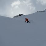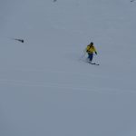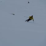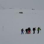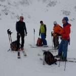Deuxième journée autour de la cabane Maighels. La neige s’est invitée à notre séjour et une petite perturbation est venue blanchir le Val Maighels. En conséquence nous avons décidé de monter au Piz Cavradi au dessus de la cabane pour effectuer la descente plein N en direction de Tschamutt. Une petite éclaircie est venue nous apporter un peu de lumière le temps de la descente, avant de repeauter en bas de nouveau sous la neige. Nous avons terminé la journée par une recherche DVA en situation réelle (exercice en groupe) avec 3 victimes ensevelis, le tout dans la pleine tempête de neige, rien de mieux pour simuler un cas réel nécessitant l’organisation d’un groupe pendant la recherche. Le debrief effectué l’après midi nous a tous permis de pointer nos erreurs et de mettre l’accent sur les points importants de ce type de situation, hyper instructif. |