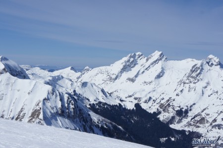 Une superbe journée dans les Aravis depuis Romme sur Cluses, charmant petit village perché entre deux vallées. La montée est longue et sans grand intérêt si ce n’est le magnifique point de vue sur le Mont Blanc et les Bornes tout au long de la montée. Solitude garantie également dans ce coin des Aravis par rapport à d’autres courses, ce qui est fort agréable. Un vent fort et peu agréable nous a accompagné dès 2000m jusqu’au sommet. Le froid était encore bien présent lors de toute la montée. Une fois au sommet, l’ami Julien voulait redescendre par Le Reposoir, bien lui en a pris car la descente dans la combe des Nants était excellente, une fine couche de neige fraîche sur fond dur nous a permis de tailler de grandes courbes super agréable sur cette neige, un vrai régal. La suite de la descente fut la descente de chemins forestier jusqu’en bas, les conditions sont encore idéales dans ce secteur des Aravis. Une superbe journée et un très beau tour de découvert ! |
