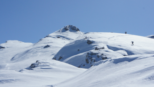 | Difficulté 2.3 | De Vallon rejoindre le Sommier d’Amont, de là remonter en direction du point 1892m, puis suivre une petite combe immédiatement à l’Est de la Pointe de Roulletaz, qui donne accès aux belles pentes Ouest qui mènent à la Pointe de la Carmélite (point 2477m, non nommée sur la carte IGN).Descente : Direction Nord-Ouest, rejoindre la belle combe entre les points 2283m et 2262m, puis retour même itinéraire. | |