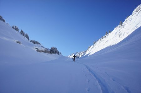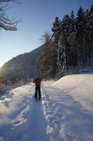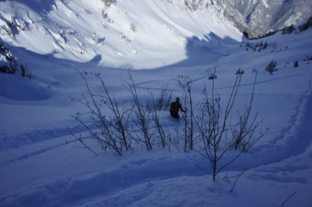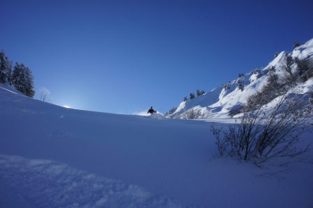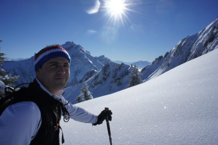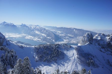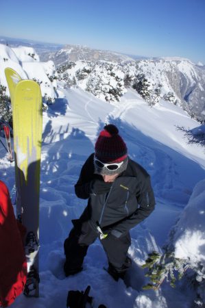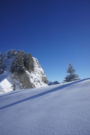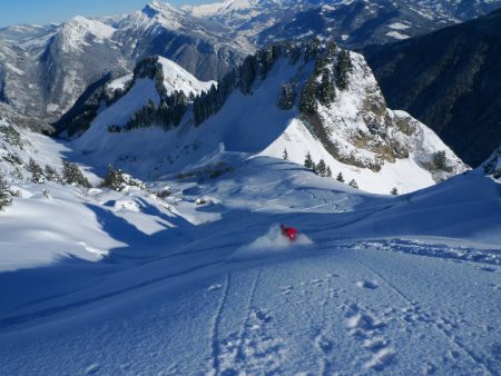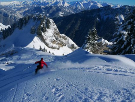 | ↑ | 1270m | Massif : Bornes – Aravis Secteur : Borne-Fier Description Vers 800m on peut prendre soit la piste qui monte à gauche soit celle qui passe par les chalets du Cruet : les 2 chemins se rejoignent au gîte du Lindion. Poursuivre direction SW jusqu’au sommet de la combe (on accède au sommet de Talamarche par une dernière pente orientée NE puis une petite arête). Accès – Matinée très fraîche au réveil avec -10°c au parking du cimetière de Morette. Cependant quel ne fut pas notre plaisir de pouvoir démarrer avec autant de neige depuis le fond de vallée. Toute la montée s’est faite à l’ombre et le froid s’est accentué au fil de la journée. Les dernières chutes de neige ont été très importantes à toutes les altitudes sur les Pré-alpes et nous l’avons plus que constaté. La vue sommitale est exceptionnelle avec le lac d’Annecy et les Dents de Lanfon en premier plan. La pente finale nous a offert un super terrain de jeu pour profiter de cette neige, pour la fin de descente le chemin ne fut pas si périlleux à skier, le tout sans aucunes touchettes : une superbe sortie ! |