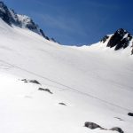 Sinon très belle montée, il a fait chaud et superbe endroit très sauvage… Nous n’avons pas atteint le sommet faute de temps et nous nous sommes arrêtés au col de la Croix. La fin est plate est longue et nous étions en retard et la neige commençait à être mauvaise avec ces grosses chaleurs. De plus en bas ça coulait sur les pentes sud dans les goulets… Le glacier des Grands est magnifique avec une pente régulière pour une super descente. Magnifique journée !. |