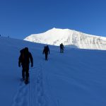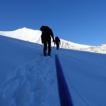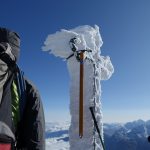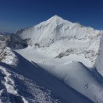 Dernier week-end de la saison pour la section montagne. Nous devions nous rendre faire le Dom des Mischabel mais les prévisions météo nous ont fait changer de destination au dernier moment. Du coup nos guides du bureau des guides de Genève Helyum nous emmènent non loin faire un sommet moins élevé mais tout aussi sympa. Nous sommes montés avec la pluie, puis avons trouvé la neige sous la cabane. Le temps était bien bouché pour cette première journée, mais le dimanche s’annonçait sous de très bons hospices. En effet ce fut une journée magnifique, froide pour un début septembre avec une bonne petite ambiance presque hivernale. 30cm de neige étaient tombés au dessus de 3000m avec une température proche de -10° lors de la remontée du Bruneggletscher. Ces conditions en neige furent idéales pour rejoindre le sommet. Nous avons été seuls toute la journée, seule une autre cordée est montée au sommet ce jour. Une journée en montagne comme on les aime, une belle course en neige, longue mais très belle. La vue sur le Bishorn et le Weisshorn depuis le sommet était tout simplement éblouissante ! |