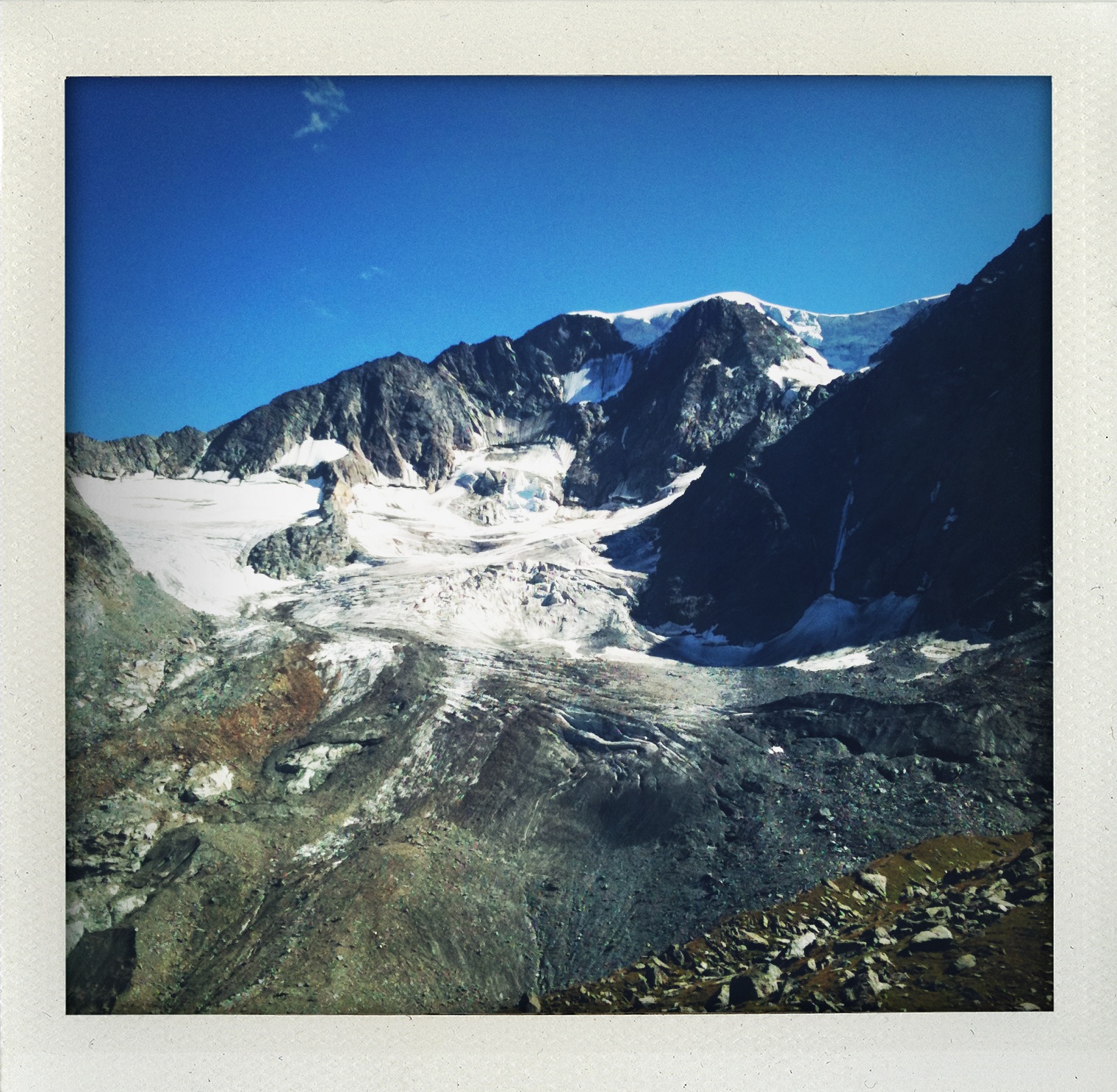 Ensuite c’est une longue ascension sur le glacier de Valsorey jusqu’au sommet, en passant par le rognon rocheux sous le sommet pour éviter de le contourner. Le sommet est immensément plat, ce qui le rend particulièrement atypique mais la vue est très belle avec un joli 360°.