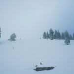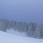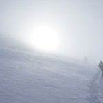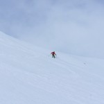 Une très belle sortie de nouveau dans les Bauges, les conditions de neige n’étaient plus tout à fait celles des semaines passées mais ce ne fut pas si mauvais toutefois lors de la redescente , notamment une fois que nous furent de nouveau dans le nuage et le brouillard. Nous étions partis à la base pour faire le couloir Nord du Beau Mollard. Mais une fois arrivé au Beau Mollard, un grand ciel bleu était là et cette longue et belle crête menant à la Pointe des Arlicots nous tendait les bras. Au sommet des Arlicots, la descente directe sous le sommet dans la combe de la Lanche semblait bien croûtée et était surtout bien traffolée, alors qu’une belle pente sans trace nous attendait à mi-chemin de la crête. Nous sommes donc redescendus dans la combe de la Lanche, depuis cette crête après le sommet du Beau Mollard, par une belle pente mais la neige fut assez irrégulière. Superbe ambiance à la montée au milieu du nuage pour ensuite retrouver le soleil pour les 150 derniers mètres sous le sommet. |