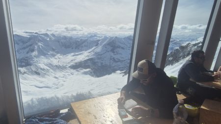 La cabane est superbe, très bel accueil, point de vue incroyable avec les immenses baies vitrées qui dominent tous les bassins glaciaires aux alentours surplombés par les 4000 des alentours et excellente restauration.