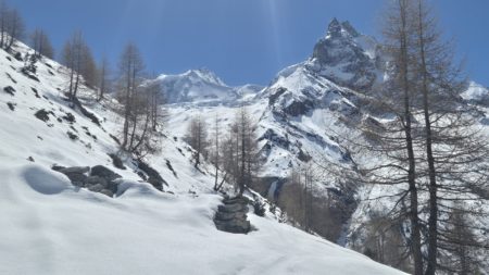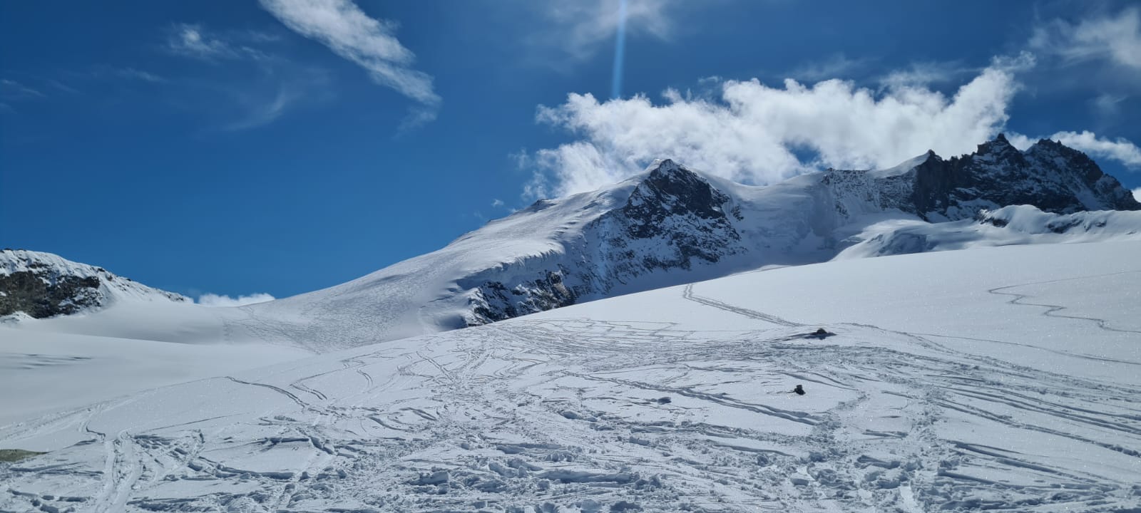 Deux jours pour aller du côté du Bishorn par la cabane de Tracuit. Le premier jour est une très longue bavante de 1650 m, ne pas hésiter à partir tôt car la chaleur de fin de saison peut être vraiment terrible pour atteindre la cabane avec cette distance et ce dénivelé.