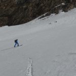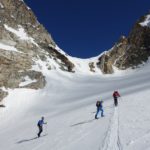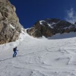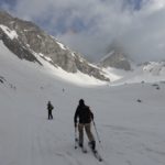 Deuxième journée pour notre groupe en Vanoise. Cette fois-ci départ plut tôt depuis Pralognan pour aller en direction du col de la Glière. 1700m de dénivelé avec pas mal de passages nuageux et moins de chaleur que les jours passés. La course est superbe, nous étions seuls toute la journée et finalement le soleil sera avec nous au sommet pour manger un bout. Sur la descente, la neige alterna entre neige froide au sommet, croûtée au milieu puis parfaitment décaillée sur le bas. Une très belle course qui nous donna envie de revenir pour aller dans le couloir Nord un prochaine fois car il nous tendait les bras mais nous n’avions pas anticipé cette éventualité… |