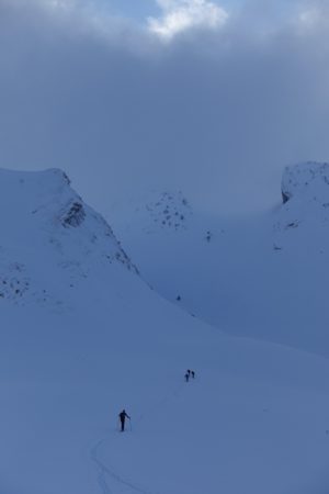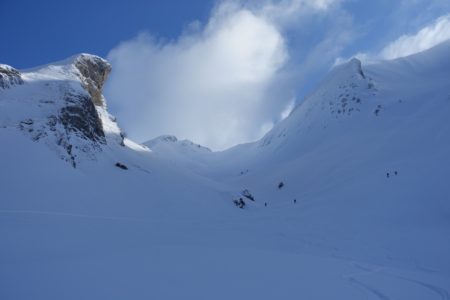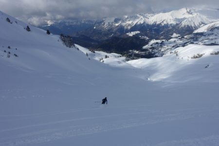 La semaine a été enneigé et nous n’avons pas pu en profiter. Du coup on s’est dit qu’en partant tôt et on pourrait aller du côté des Porthets, puis basculer sur la Gouenne pour profiter de la dernière chute. Nous étions parmi les premiers sur la trace et nous avons tracé toute la combe des Porthets dans 25cm de neige froide reposant sur un bon fond dur dans un froid saisissant, un vrai plaisir ! Une fois au sommet, nous découvrons de nombreuses coulées qui ont pas mal ravagé l’envers du col et la traversée vers la Gouenne. Plutôt que de se faire souffler la poudreuse sous le nez, nous décidons de tracer les Porthets pour remonter et basculer vers la combe des Fours ensuite. Deux montées très efficaces pour beaucoup de poudreuse, bref un choix payant qui nous aura ravi. 10h50 à la voiture, midi à la maison, efficace je vous disais ! |