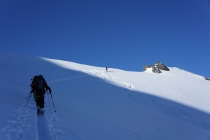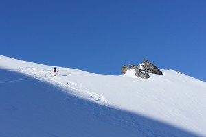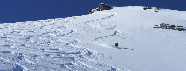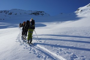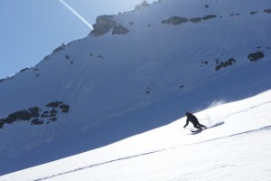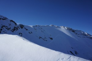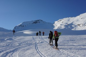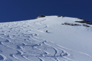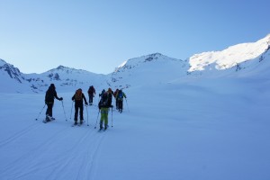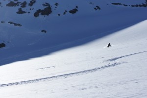 | 900m | Massif : Vanoise Secteur : Maurienne Description Redescente par le même itinéraire. Accès Troisième et dernier jour dans cette très belle vallée de la Rocheure. L’objectif initial était la Pointe NE du Châtelard en traversée, mais les guides ont préféré nous faire skier des pentes plus au nord tant la qualité de la neige rencontrée la veille avait été exceptionnelle. Ainsi nous sommes allés le glacier du Géfret dans sa section de droite pour atteindre un col par une pente soutenue mais régulière. La descente eut lieu dans une superbe neige poudreuse sur les 400m de dénivelé du glacier, un vrai régal pour tout le groupe, quelle dernière journée ! La redescente fut plus difficile par la suite, surtout en raison de la distance et du plat. 10kms nous attendaient pour rejoindre les voitures, d’abord par un long faux plat montant puis descendant… la chaleur fut « seulement » de la partie sur la dernière heure ce qui nous facilita tout de même la tâche ! Trois superbes journées en Haute Maurienne, en plein coeur de la Vanoise. Peu de monde autour de nous, un groupe super avec une excellente ambiance, la montagne comme on l’aime ! |