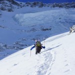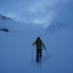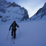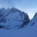 | E1 | Voici plusieurs mois que nous avions planifié de partir quelques jours en montagne ensemble avec Xavier guide de chez Helyumguides, histoire de faire une belle pente à ski selon les conditions du moment. Cela fait un presque 10 ans que nous skions ensemble, mais jamais que les deux, voilà une chose de réparée. C’est ainsi qu’en cette mi-avril nous prîmes la direction de la petite face nord de la Grande Casse, la météo étant compliquée ces temps.