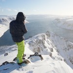 Autre première le lendemain, avec une descente sur la baie d’Hornvik. Soleil, vue sur l’océan arctique, décor de carte postale. Malheureusement les pentes ont été balayées par le vent et la neige a été remplacée par de la glace. Tant pis pour les grandes courbes dans la poudre, on en prend quand même plein les yeux.