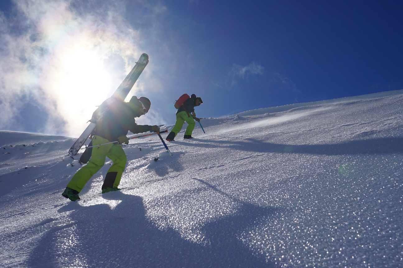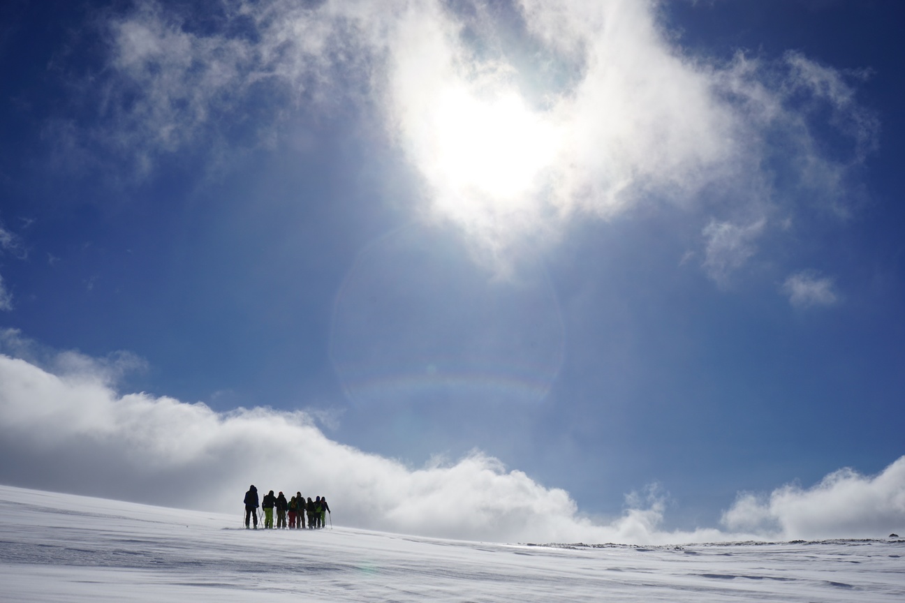 Au début avril, les journées sont déjà longues. On profite un maximum en skiant jusqu’en début de soirée. En moyenne, on enchaine quotidiennement entre 1500m et 1800m de dénivelé. Nous ne sommes pas dans les Alpes, on reste donc dans du ski assez facile.