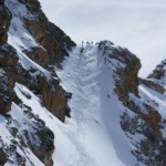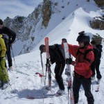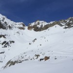 | Crampons conseillés dans la pente finale. Couteaux pour la traversée. |