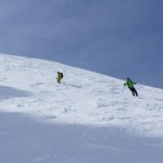 Cette première journée se déroula dans le massif des Monts Rouges, en direction du col de la Cassorte. Une petite montée pour ensuite rejoindre le col de Ignes et trouver une pente sommitale en excellente neige poudreuse. La suite fut plus difficile jusqu’à Satarma, avec une neige très lourde et de moins en moins présente en raison des fortes chaleurs.