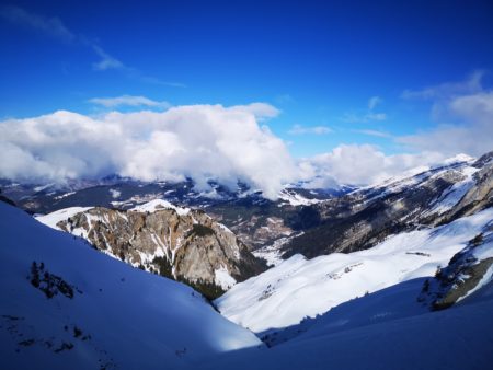 Petite sortie décrassage pour prendre l’air avec François, petit sommet très joli que nous n’avions bizarrement jamais fait à skis. Du coup avant de mourir idiot, nous y sommes allés. La neige n’était pas fantastique, mais cela restait skiant et le beau temps était avec nous.