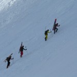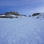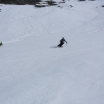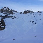 La pente SW se repère très bien lors de la montée, nous sommes remontés dedans, même s’il est possible de l’accéder sans la remonter. Une fois au sommet du Mont Freide, nous avons attendu 45 minutes que la neige décaille comme il le fallait. La descente fut parfaite.
